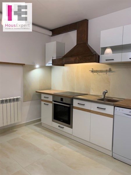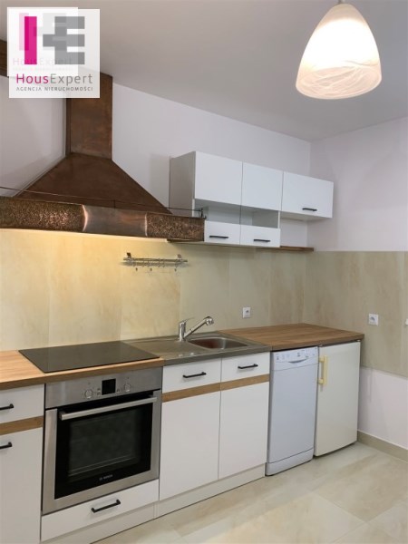 Kuchnia i łazienka po generalnym remoncie: nowe meble, sprzęty AGD: zmywarka, piec, lodówka, pralka.